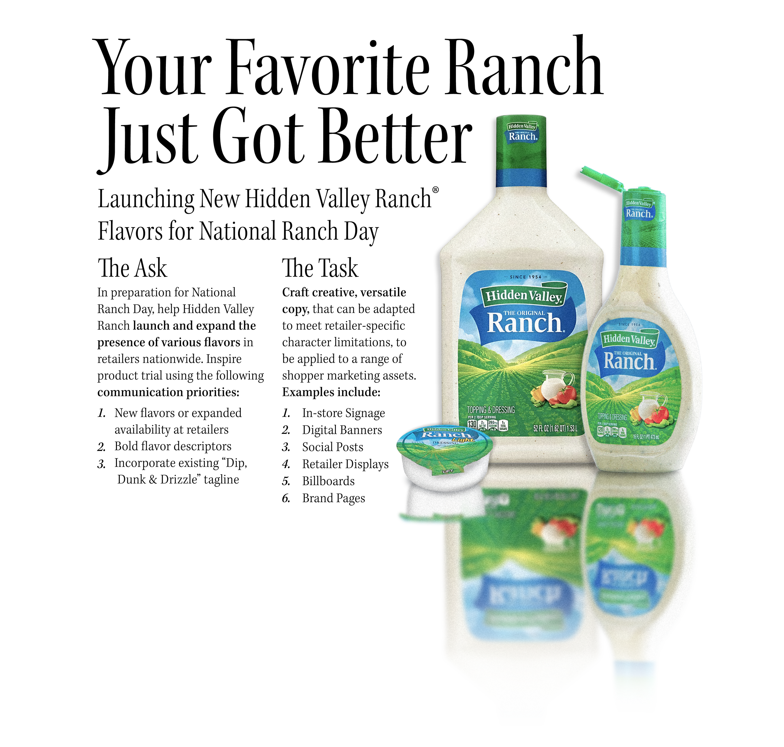 Two of my shopper headlines were highlighted on the Hidden Valley Ranch website to drive the extension of the campaign on the brand’s product pages.